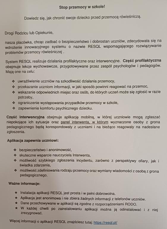 RESQL – SYSTEM PRZECIWDZIAŁANIA PRZEMOCY RÓWIEŚNICZEJ