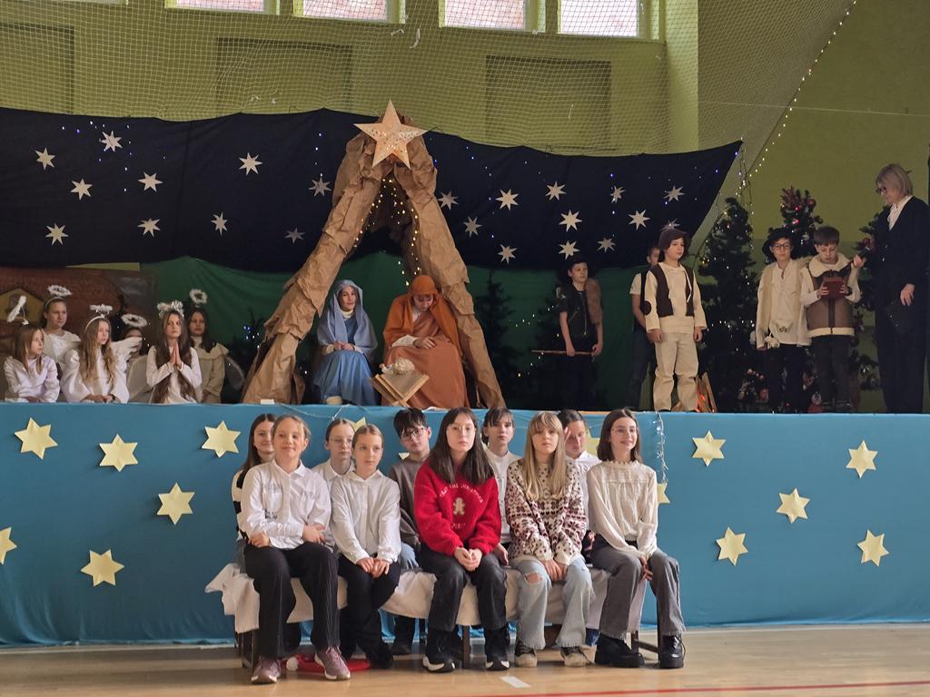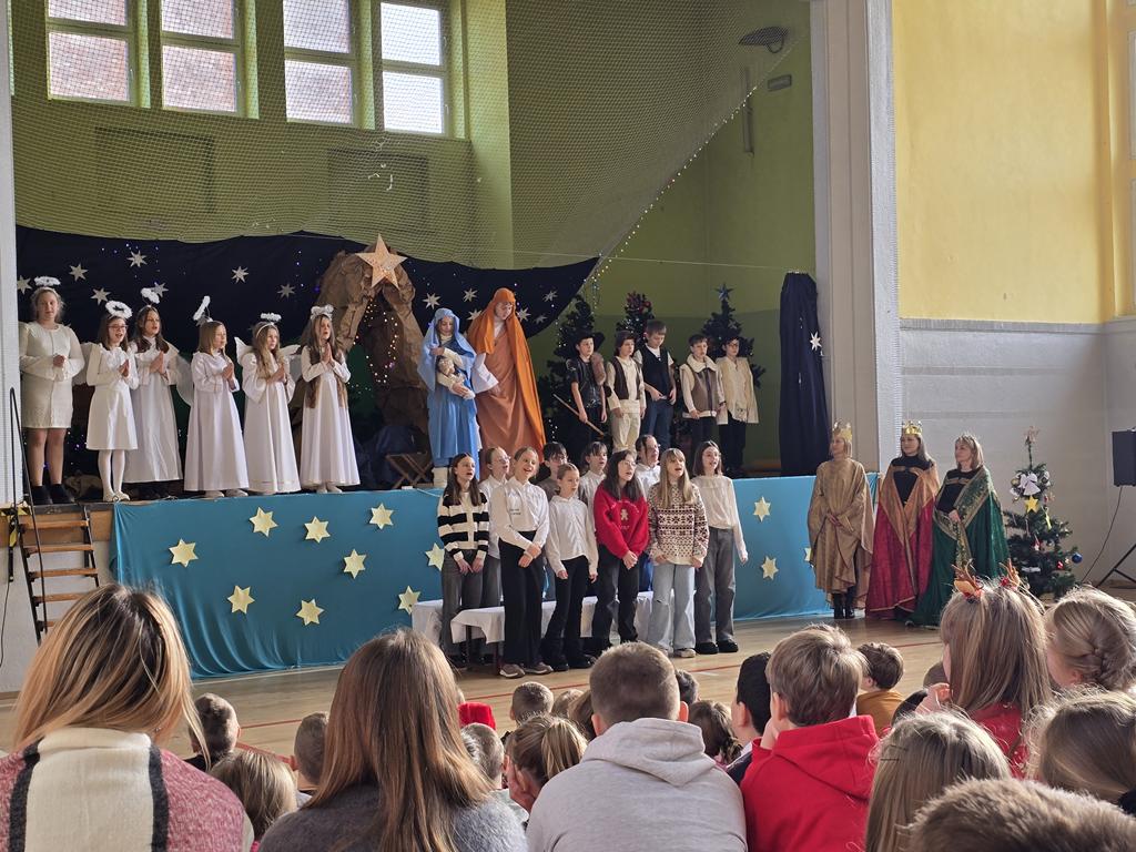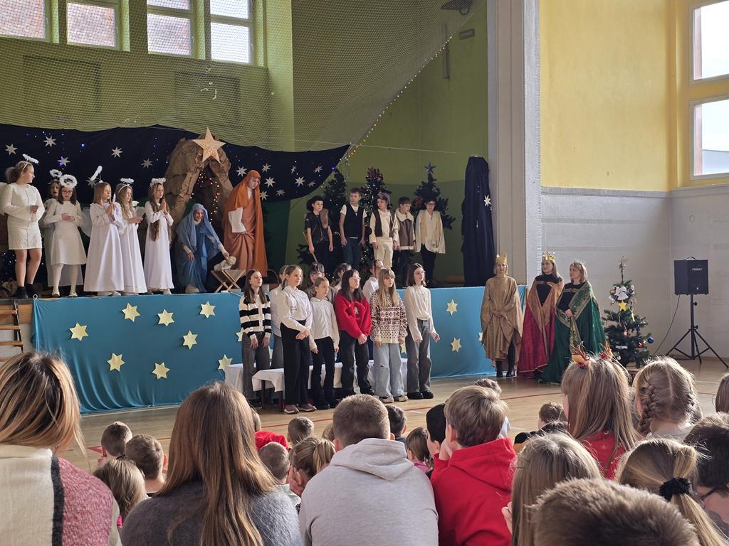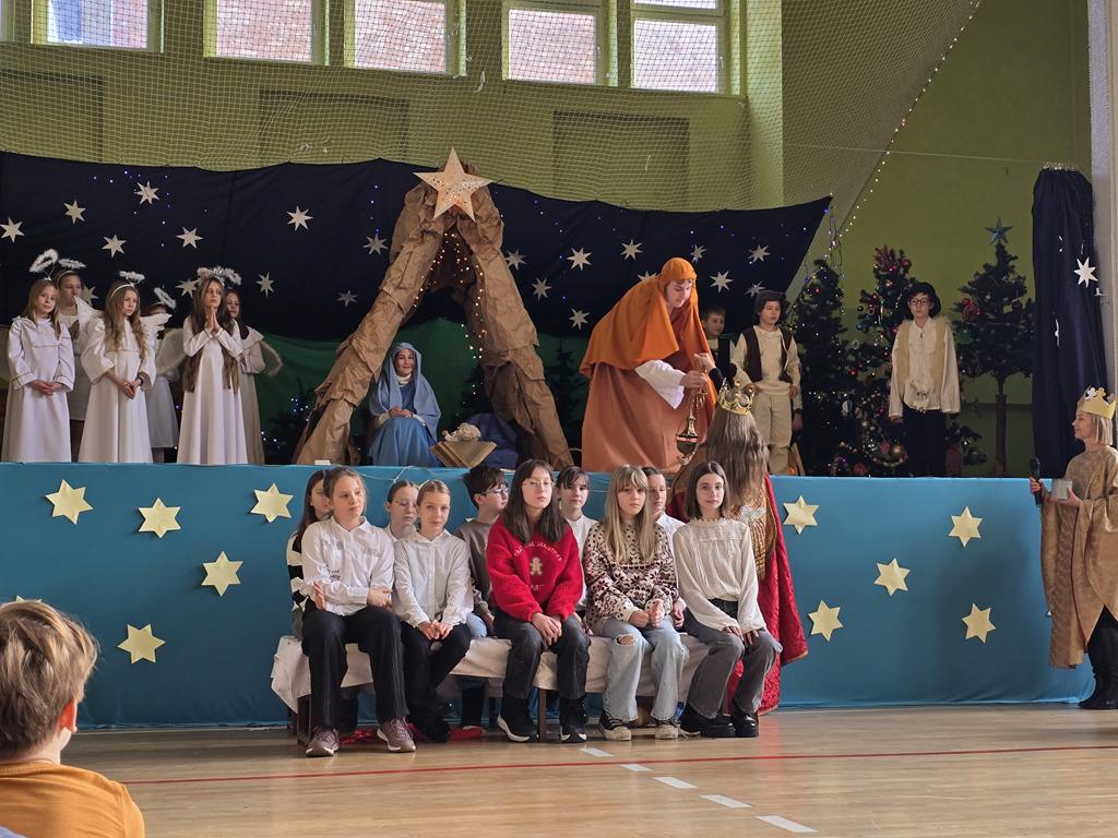 Dziś w naszej szkole odbyły się Jasełka. W przedstawieniu występowali zarówno uczniowie, jak i nauczyciele. Wszyscy byli bardzo zaangażowani, co było widać na scenie. Dzięki wspólnej pracy i wysiłkowi Jasełka bardzo się udały i dostarczyły widzom wielu miłych wrażeń oraz wprowadziły nas w świąteczny nastrój, przygotowując nas na nadchodzące Święta Bożego Narodzenia.