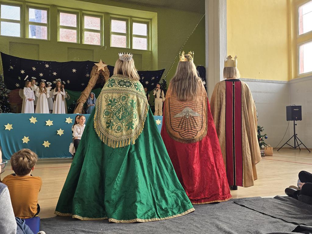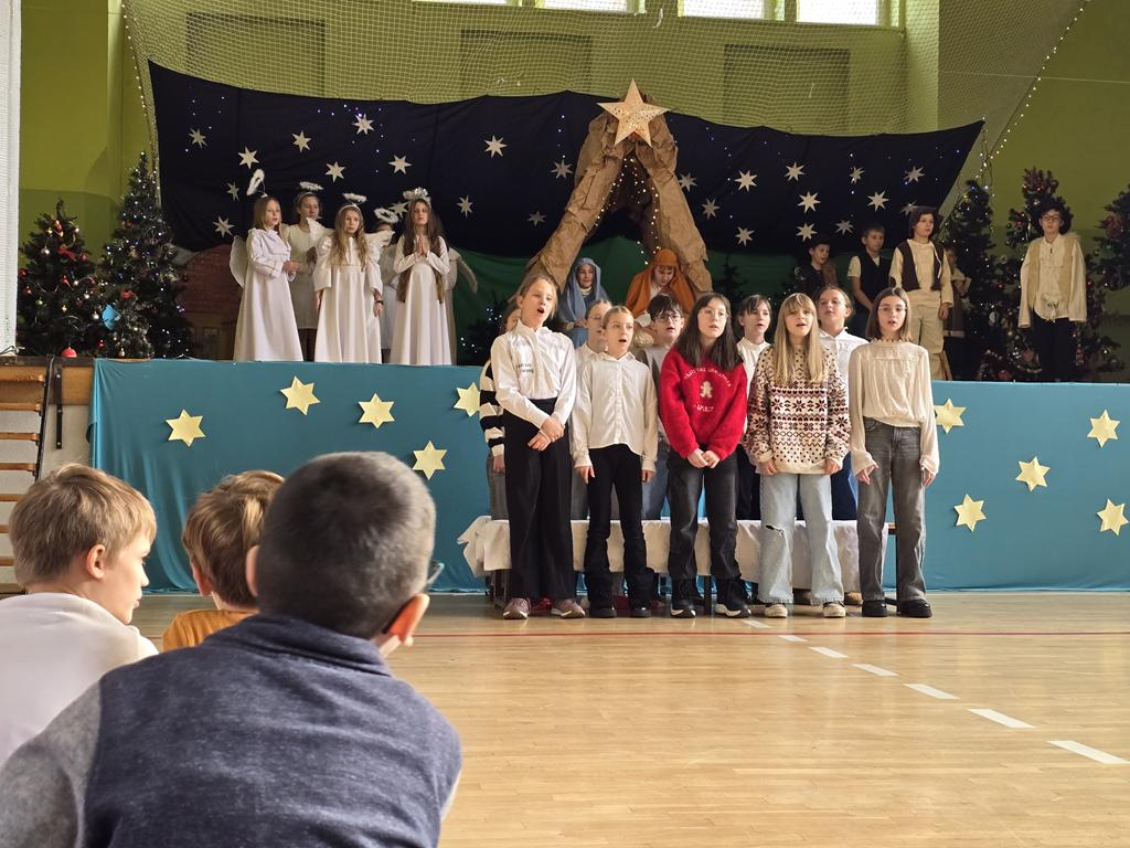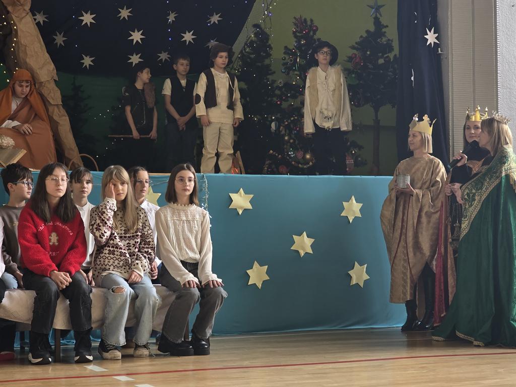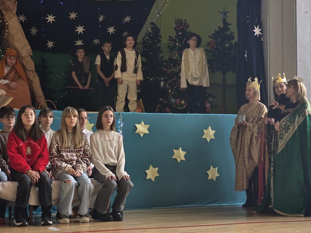 Dziś w naszej szkole odbyły się Jasełka. W przedstawieniu występowali zarówno uczniowie, jak i nauczyciele. Wszyscy byli bardzo zaangażowani, co było widać na scenie. Dzięki wspólnej pracy i wysiłkowi Jasełka bardzo się udały i dostarczyły widzom wielu miłych wrażeń oraz wprowadziły nas w świąteczny nastrój, przygotowując nas na nadchodzące Święta Bożego Narodzenia.